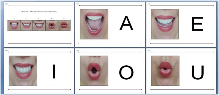 O que é? – Material elaborado como pista sensorial (visual) dos padrões articulatórios (articulações) das vogais que compõem o alfabeto fonético.